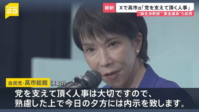 「党を支えて頂く人事は大切ですので、熟慮した上で今日の夕方には内示を致します」