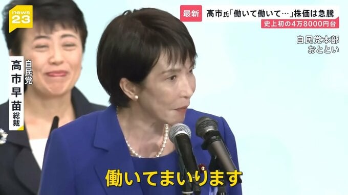 4日、 自民党の新総裁に選ばれた高市氏。積極的な財政政策が取られるとの思惑が市場に広がったのです。