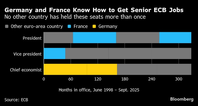 域内の経済大国であるドイツとフランスは、これらの役職に狙いを定めている。両国とイタリアは、ECB理事会に常に自国の代表を送り込んできた。