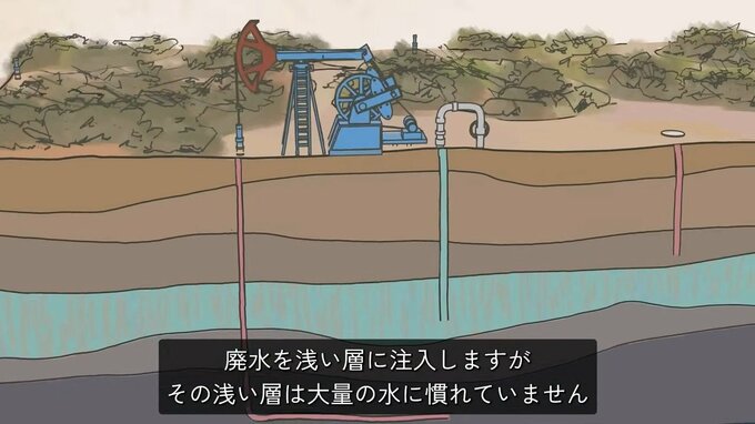 浅層に過剰に圧入された廃水が、地下の物質を押し上げ、古い井戸の隙間から噴出させていたのです。