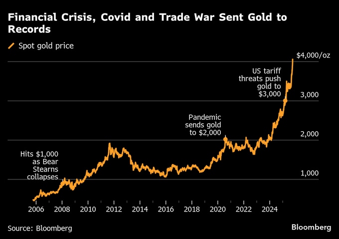 (ブルームバーグ):金価格が1オンス=4000ドルを突破したことは、3年にわたる上昇局面において新たな節目となった。根強い懐疑論を退け、金の値動きを長らく的確に予測してきた分析モデルさえも覆す勢いだ。