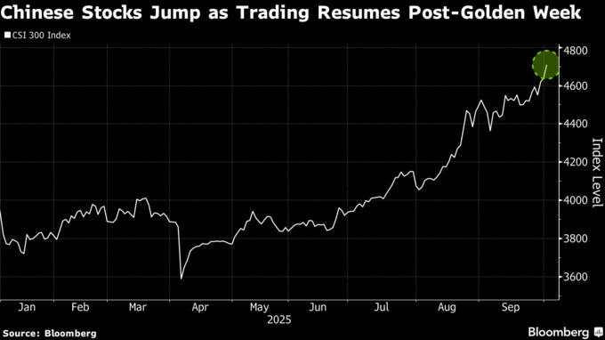 原題:China Stocks Rise Post-Break as AI, Gold Outshine Tepid Spending(抜粋)