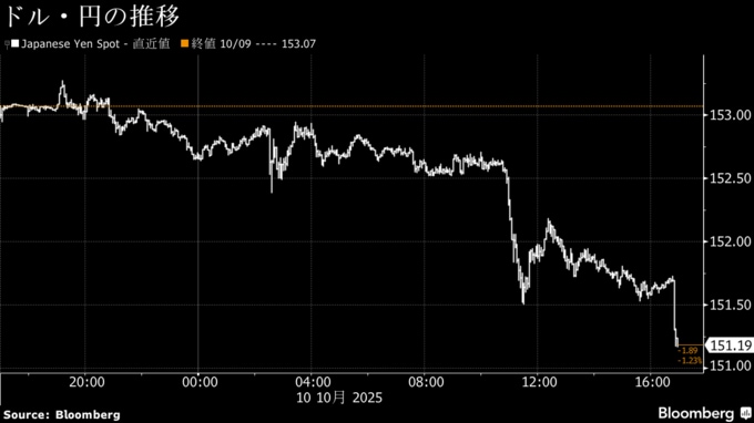 外国為替市場ではトランプ氏の発言を受けてドルが売られ、円が買われる展開となった。円相場は1ドル=152円台後半で推移していたが、発言が伝わると一気に151円台半ばまで上昇した。さらに取引終盤には、中国製品に100%の追加関税を課すとのトランプ氏の発言を受け、円は一段高となった。