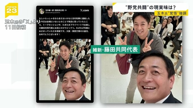 11日は万博会場を訪れ、偶然会ったという維新の藤田共同代表と撮った写真を投稿しました。この場で、どんな会話が交わされたのかはわかりませんが、その後、大阪市内で演説を行った玉木氏は…