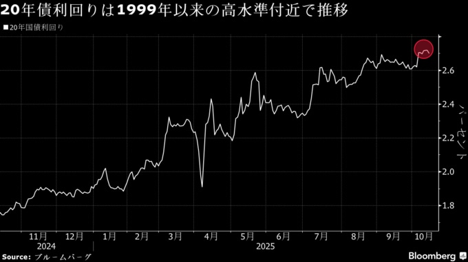 20年国債はこれまでよりも償還期限が3カ月延び、新回号として発行される。表面利率は2.7%と1999年以来の高水準。利回り曲線上で割安感がある。