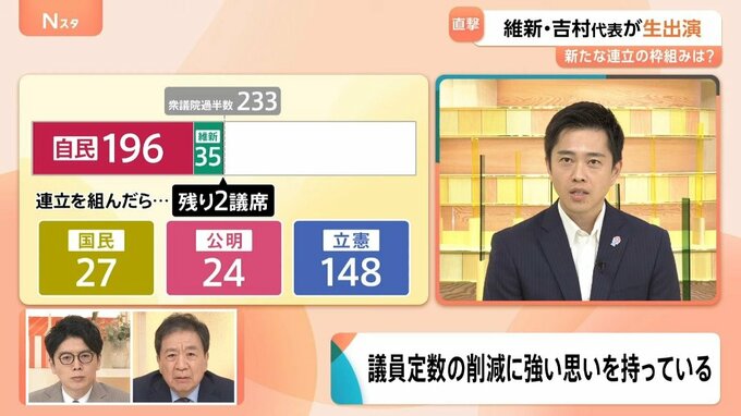 維新の会として約束した議員定数の削減は、109から88まで実際に減らしました。もう大混乱になりましたが、それをやって、そこからさまざまな改革をやってきたというところもあります。