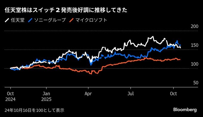 同社の株価はスイッチ2の記録的な初動販売で、過去1年で50%超上昇した。連日高値を更新した後のここ数週間は投資家は冷静になっている。