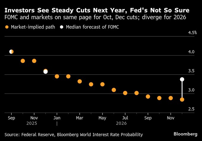 意見の分かれる当局者の立場を政策に落とし込むのが、パウエル議長の任務だ。パウエル氏は雇用リスクへの対応が遅れる危険性を指摘し、次回10月28、29日の連邦公開市場委員会(FOMC)での利下げを示唆している。