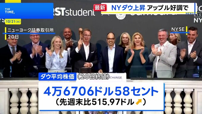 20日のニューヨーク株式市場は、新型スマートフォンの販売が好調なアップルが大きく値上がりしたことなどから、平均株価は500ドルあまり上昇しました。ニューヨーク株式市場は20日、アメリカと中国で新型スマート…