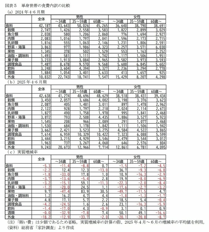 今後も、実質賃金の動向や物価の推移に注目しながら、単身世帯の消費行動の変化を継続的に観察していくことが重要である。