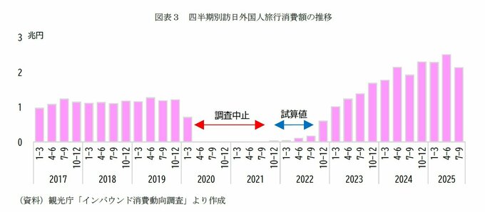 本稿では、観光庁「インバウンド消費動向調査(2025年7-9月期)」を中心に、こうした構造変化の実態と、その先に見える可能性について考察する。