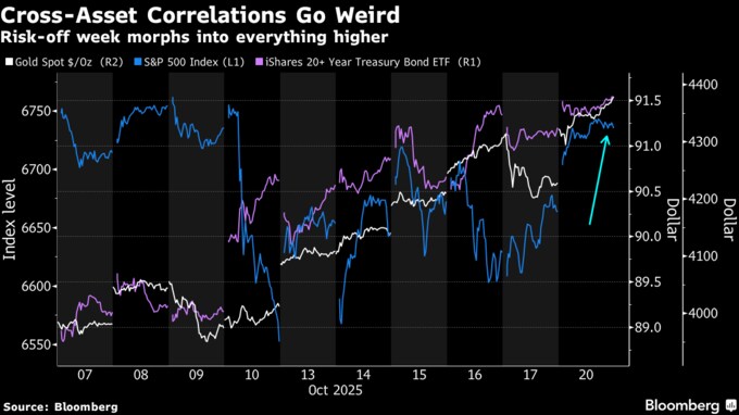 こうした状況についてモラヴィ氏は、「全てがおかしい」とコメント。債券、株式、金の間の歴史的な相関関係が「完全に失われている」と付け加えた。