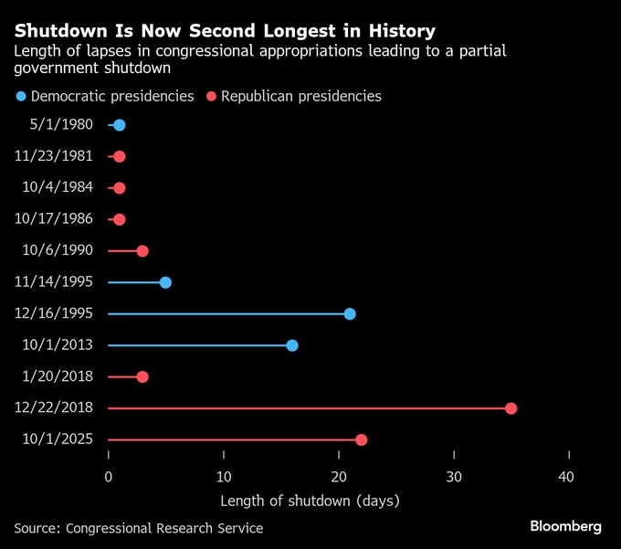 原題:US Government Shutdown Is Now Second Longest in History(抜粋)