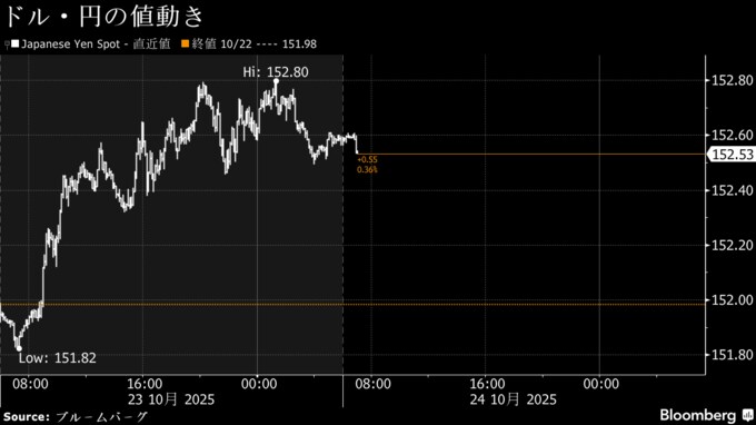 (ブルームバーグ):24日朝の外国為替市場の円相場は対ドルで152円台半ばと、前日夕から横ばい圏で推移。原油価格の大幅上昇に伴うインフレ懸念から米国の長期金利が上昇し、ドルを支えている。日本時間夜に米消費者物価指数(CPI)の発表を控えて積極的なドル買いは限定的だ。