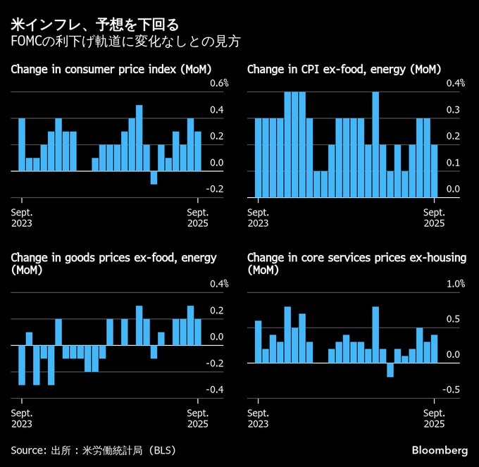 パイオニア・インベストメンツの債券・通貨戦略ディレクター、パレシュ・ウパダヤ氏は9月CPIについて「来週の連邦公開市場委員会(FOMC)だけでなく、12月会合についても利下げの青信号が点灯した」と指摘。「非常に良い数字だった。しかもデータは政府機関の閉鎖前に収集されたため、クリーンなデータでもある」と続けた。