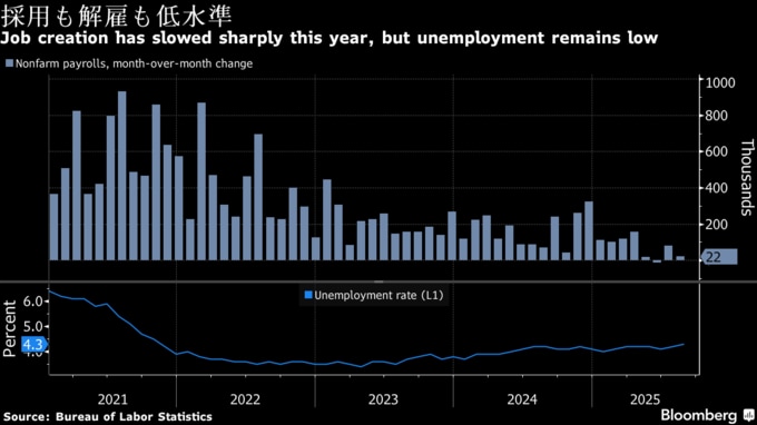 その後に発表された労働市場関連のデータは、勢いの乏しさを示す内容となっている。10月に入ってからは、政府機関閉鎖の影響で民間調査が一部補完している。パウエル米連邦準備制度理事会(FRB)議長は10月に入り、労働市場について「実際のところかなり顕著に軟化した」と述べ、「相当な下振れリスク」があると指摘した。
