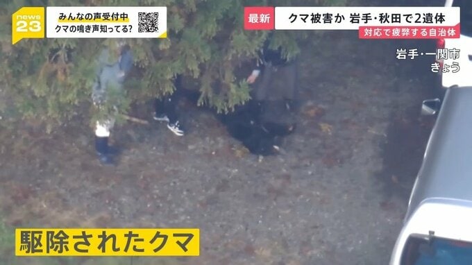 27日、岩手県一関市に集まっていたのは警察官。猟銃を持つ猟友会のメンバーの姿も見られます。そして、カメラが捉えたのは駆除された1頭のクマでした。