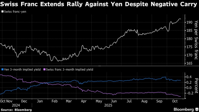 この取引は、主要通貨の中で最も金利が低いスイスと日本の金融政策の方向性が異なることに着目したものだ。スイス国立銀行(SNB)が6月に政策金利をゼロに引き下げたのに対し、日本銀行は1月に0.5%に引き上げ、今後も引き締めを続けるとみられている。