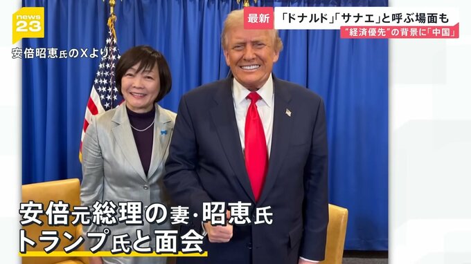 安倍元総理の妻・昭恵氏は、トランプ氏と面会。「主人のことを今も大切に思ってくださり、私にも温かいお言葉をかけていただいた」と自身のSNSに投稿しています。