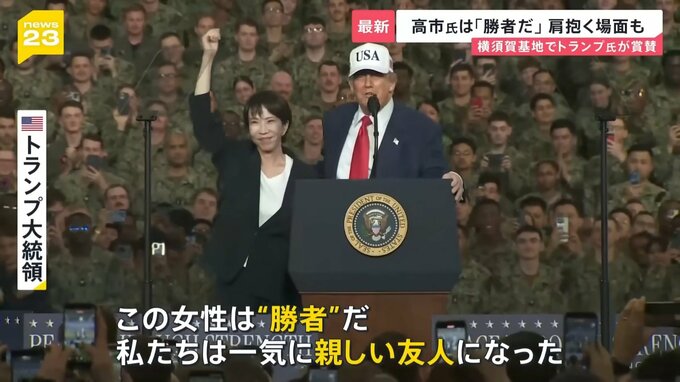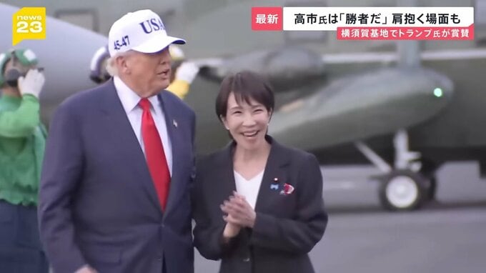 横須賀基地でトランプ氏が賞賛「ドナルド」「サナエ」と呼ぶ場面も