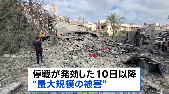 イスラエル軍はイスラム組織ハマスが停戦合意に違反したとしてガザ全域を空爆し、100人以上が死亡しました。停戦発効以降、最大規模の被害とみられます。イスラエル軍は28日から29日にかけてガザ全域を空爆し、ガ…