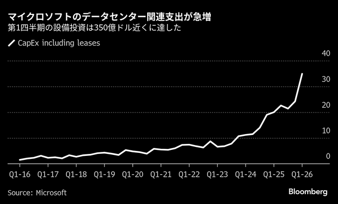 データセンター関連支出の指標である設備投資はリースを含めて349億ドル(約5兆3000億円)。前四半期の240億ドルから大幅に拡大した。