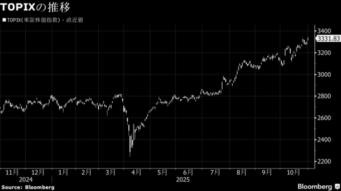 経済指標は3日に10月の米供給管理協会(ISM)製造業景況指数、5日に10月の米ADP民間雇用者数、6日は国内で9月の毎月勤労統計など。4-5日には衆院で高市早苗首相の所信表明演説に対する各党の代表質問がある。10月第5週の東証株価指数(TOPIX)は週間で1.9%上昇と続伸。米中摩擦への懸念が和らぎ、米ハイテク大手の動向を受けたAI市場の成長期待も後押しした。