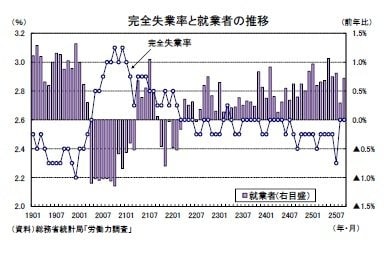 失業者数は前月から若干増加したが、就業者数が前月から大幅に増えており、内容的には悪くない。