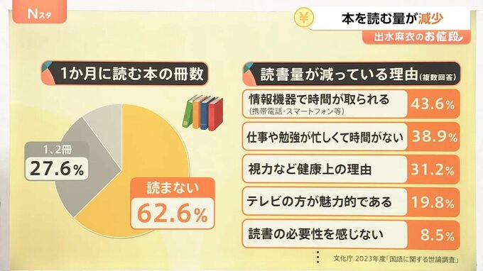 ブックラウンジが増える一方で、読書量は減っているという調査があります。