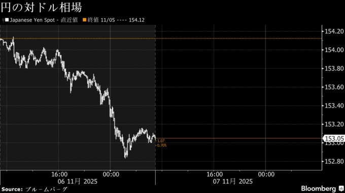 (ブルームバーグ):7日朝の外国為替市場の円相場は対ドルで153円ちょうど付近と前日夕から上昇している。米国で企業の人員削減数が10月としては過去20年余りで最多となり、利下げ期待から長期金利が低下し、ドルが売られた。東京市場でもその流れが続き、ドルの上値が重い展開となりそうだ。