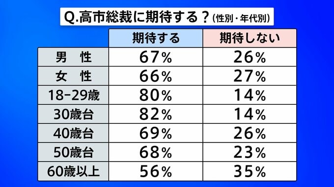 ちなみに【10月のJNN世論調査】は、高市総裁就任当日の10月4日と翌5日に実施した。その時は「高市総裁に期待できるか」という質問に対し、「期待する」は66%にのぼった。今回は「高市内閣を支持できるか」と聞いているため、単純に比較はできないが、この1か月で16ポイント上昇したと見ることができる。