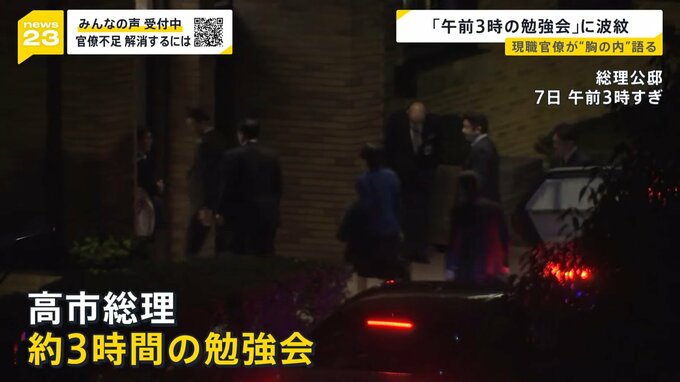 7日の午前3時、高市総理は、就任後初の予算委員会での答弁に備えて、約3時間の勉強会を行いました。