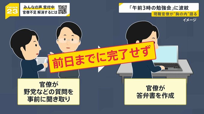 「省庁の職員の中には、答弁作成してそのまま徹夜の方もいらっしゃると思う」