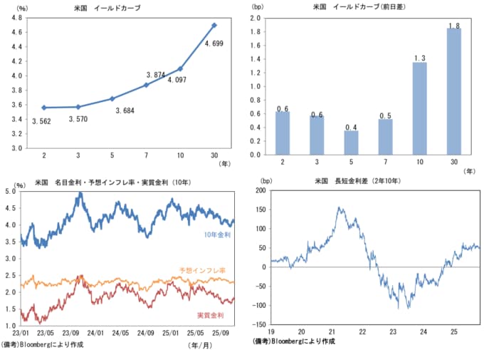 実質金利は1.801%(▲0.2bp)へと低下。長短金利差(2年10年)は+53.3bpへとプラス幅拡大。