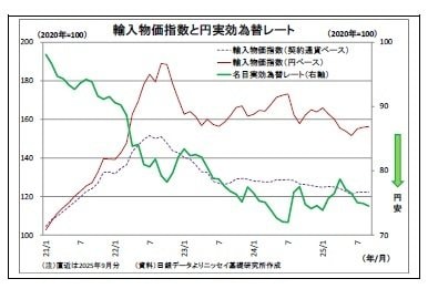 高市政権の高い支持率の背景には物価高対策への期待があるだけに、円安の進行は支持率の低下を通じた政権の不安定化や政策の実行力低下につながりかねない。
