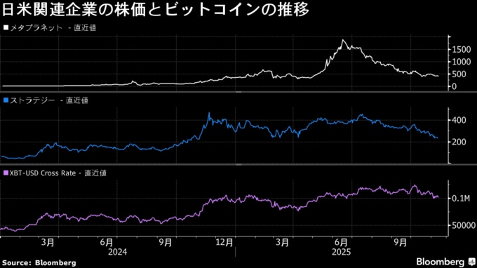 ビットコインの伝道者と呼ばれるマイケル・セイラー氏が率いる米ストラテジーをモデルにした暗号資産トレジャリー企業は、ここ数カ月で株価が急落し、個人投資家は多額の損失を被る事態に陥っている。およそ660億ドル(10兆1600億円)相当のビットコインを保有するストラテジーの株価は、7月に付けた年初来高値(457.22ドル)からほぼ半分になった。