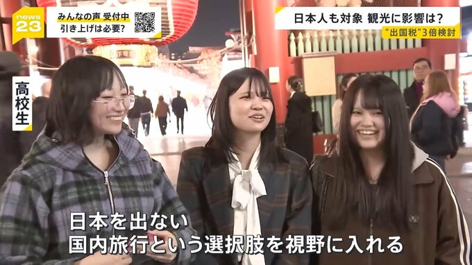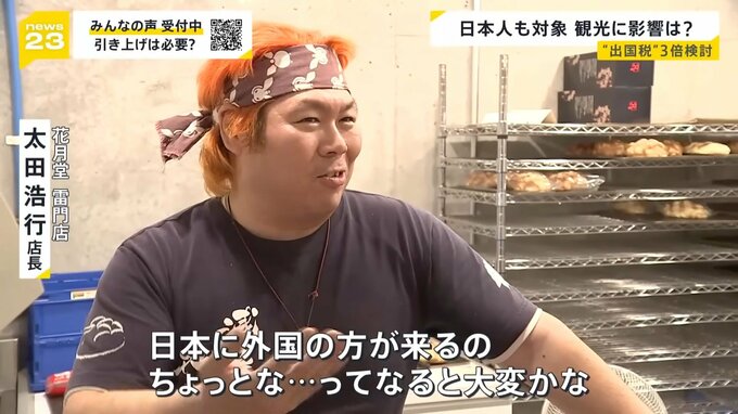 客の半数近くが外国人観光客だということで、出国税の引き上げには、不安の声をあげています。
