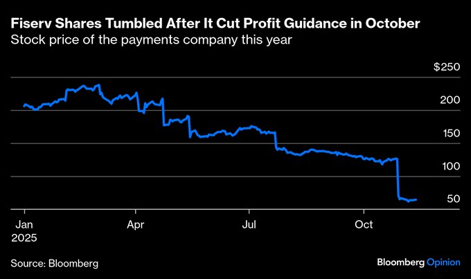 ロスチャイルド・アンド・カンパニー・レッドバーンに勤めるドミニク・ボール氏(26)は今年数か月にわたり、フィンテック企業のファイサーブに売り評価を下していた唯一の株式アナリストだ。その後、同社は10月下旬に業績予想の大幅な下方修正を発表し、株価が44%急落した。下落は今も続いている。