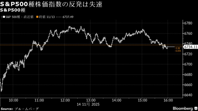 (ブルームバーグ):14日の米金融市場ではS&P500種株価指数が小幅続落。ハイテク株に買いが戻ったが、大量の経済データ発表を控えた慎重ムードの中、勢いは失速した。12月の連邦公開市場委員会(FOMC)を控え、利下げの実現性に不安が広がっている。
