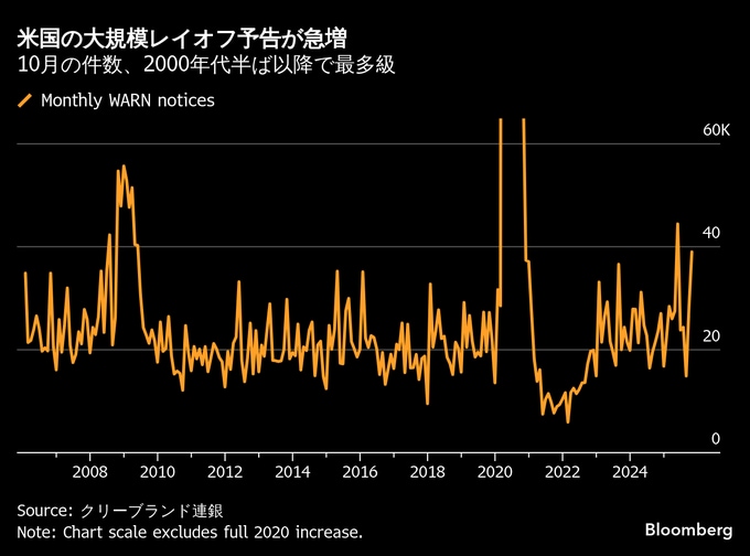 原題:Notices of Impending Layoffs by US Companies Surged in October(抜粋)