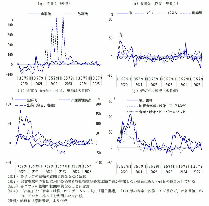 主な個別費目の状況~分野ごとに異なる動き、回復と抑制が並行