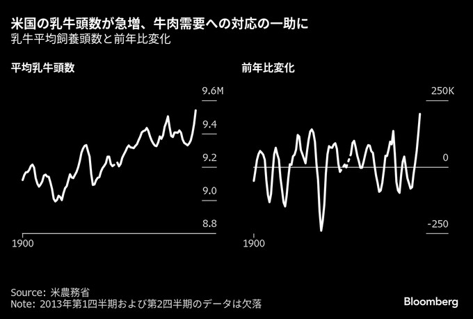 原題:Surge in US Dairy Herd Signals Some Relief for Beef Shortage(抜粋)