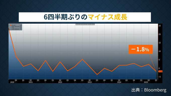 11月17日、2025年7ー9月期の実質GDP速報値が発表されました。前期比マイナス0.4%、年率換算でマイナス1.8%と6四半期ぶりのマイナス成長です。市場予想のマイナス2.4%よりは小幅なマイナスだったものの、日本経済の減速感が鮮明となりました。