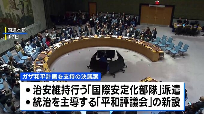 国連の安全保障理事会が、アメリカのトランプ政権が主導するパレスチナ自治区ガザでの和平計画を支持する決議案を採択したことについて、イスラム組織ハマスは反対する姿勢を示しました。決議案には、ガザの治安維…