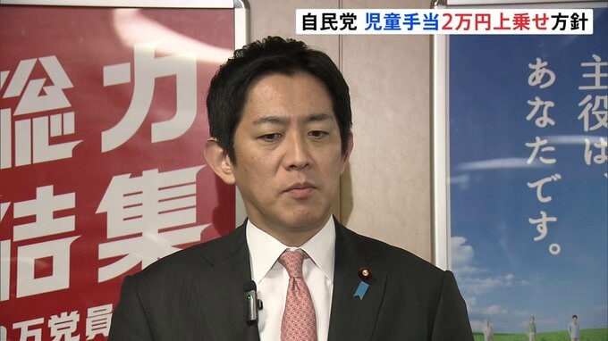 政府が策定する経済対策をめぐり、自民党の小林政調会長は児童手当を子ども1人あたり2万円上乗せする方針を明らかにしました。自民党の小林政調会長はきょう、公明党の岡本政調会長と会談し、政府が策定する経済対…