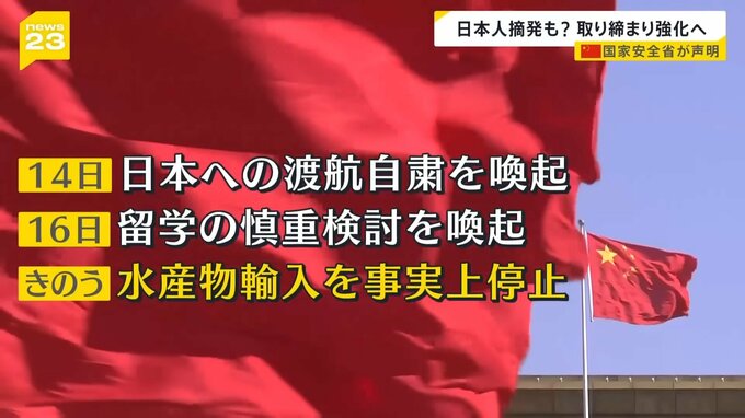 高市総理の台湾有事をめぐる答弁への批判をエスカレートさせる中国政府。これまで、日本への渡航自粛や、留学を慎重に検討するよう注意喚起したほか、19日には日本産の水産物の輸入を事実上、停止しました。