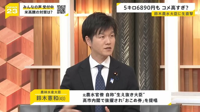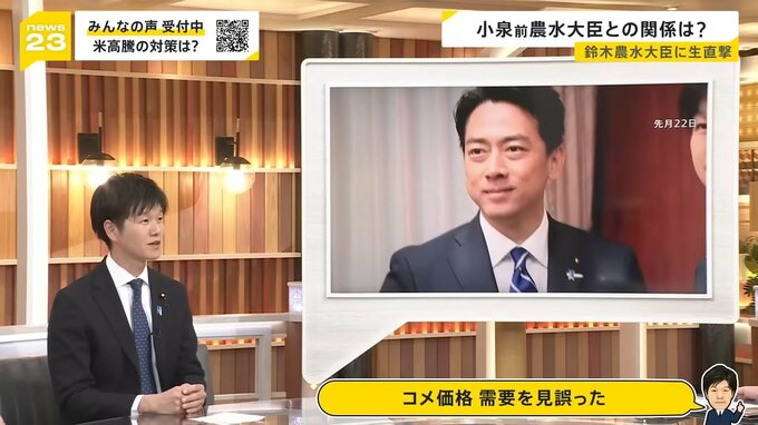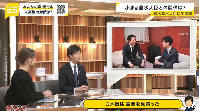 そうした中で、鈴木大臣はかねがね「コメの価格はマーケットの中で決まる」と発言しています。いつになったら、1年ぐらい前の、急激に価格が上がる前の価格に戻りそうなのか、見通しは立っているんですか?