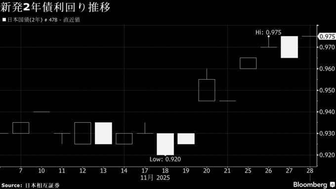 政府は28日に総合経済対策の裏付けとなる2025年度の補正予算案を閣議決定し、それに伴い財務省は国債発行計画の見直しを行う。割引短期国債のほか、2年債と5年債が増発されるとの報道が出ていた。