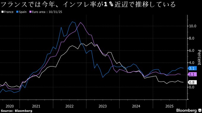 同日発表されたフランスのCPIは、前年同月比0.8%増と横ばいだった。アナリストらは1%の小幅上昇を見込んでいた。