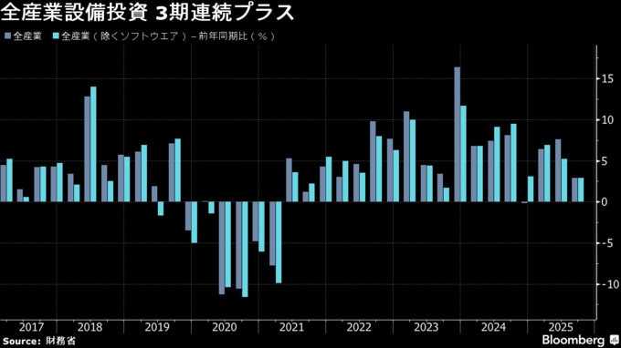 (ブルームバーグ):財務省が1日発表した法人企業統計(速報値)によると、7-9月期の全産業(金融・保険を除く)の設備投資は3四半期連続のプラスとなった。